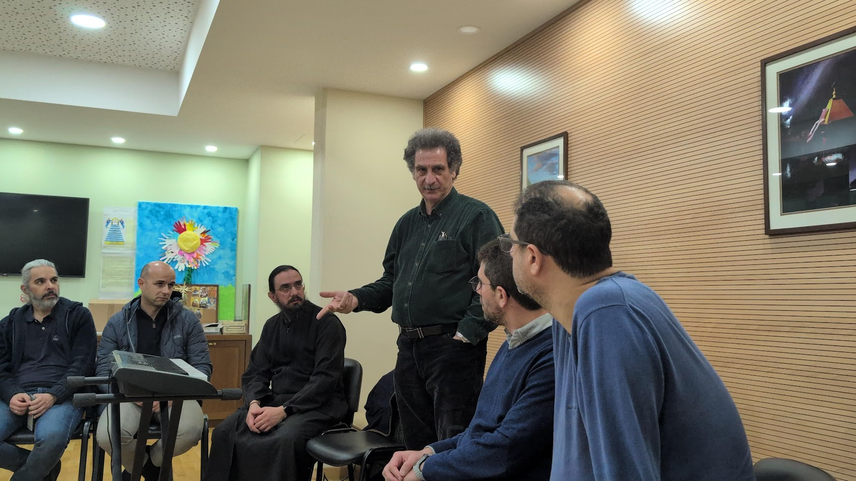 Τα μέλη μας παρακολούθησαν με αμείωτο ενδιαφέρον τις υποδείξεις του σε θέματα που αφορούν την σωστή τοποθέτηση της φωνής, τη διόρθωση του ένρινου ήχου, της βραχνάδας, του ασθενικού ήχου, ασκήσεων ενδυνάμωσης του φωνητικού συστήματος και άλλων πολλών χρήσιμων παραινέσεων προσαρμοσμένων βέβαια στο Βυζαντινό μουσικό ύφος.