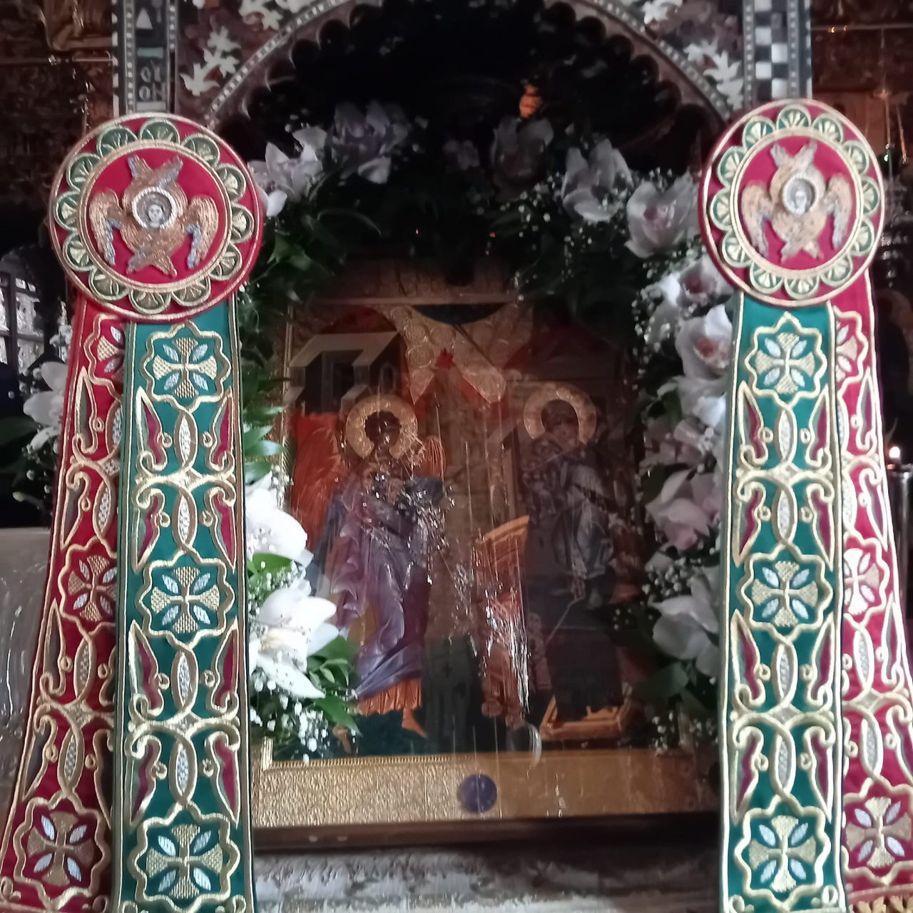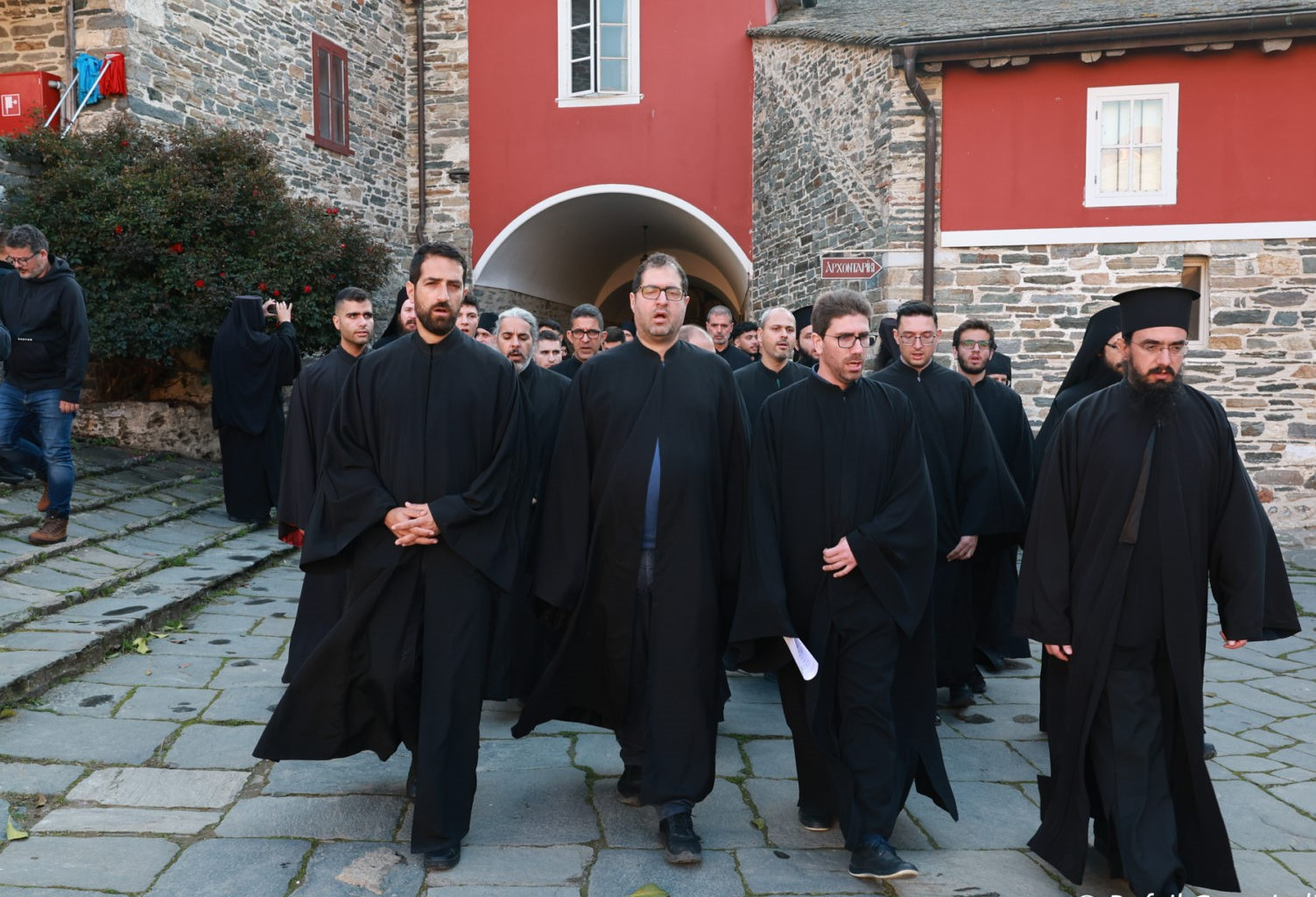 Εγκάρδιες ευχαριστίες εκφράζουμε στους πατέρες και στον Άγιο καθηγούμενο της Ιεράς Μεγίστης Μονής Βατοπαιδίου, τόσο για την αβραμιαία τους φιλοξενία, όσο και για την τιμή να διακονήσουμε για τέσσερις συνεχείς ημέρες το δεξιό αναλόγιο της πανηγυρίζουσας Ιεράς Μονής.