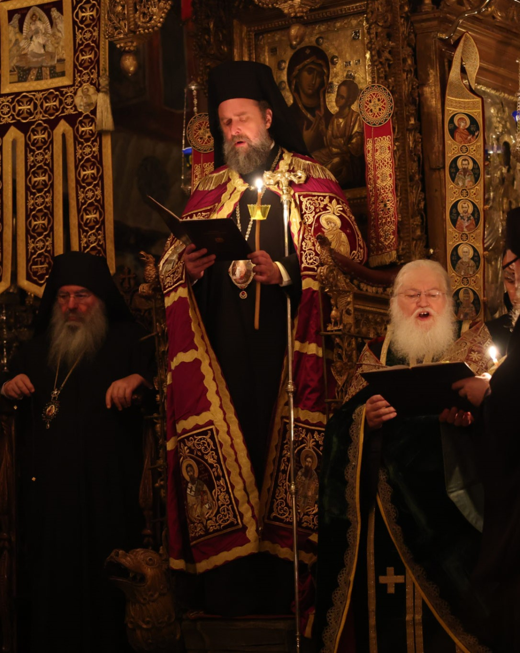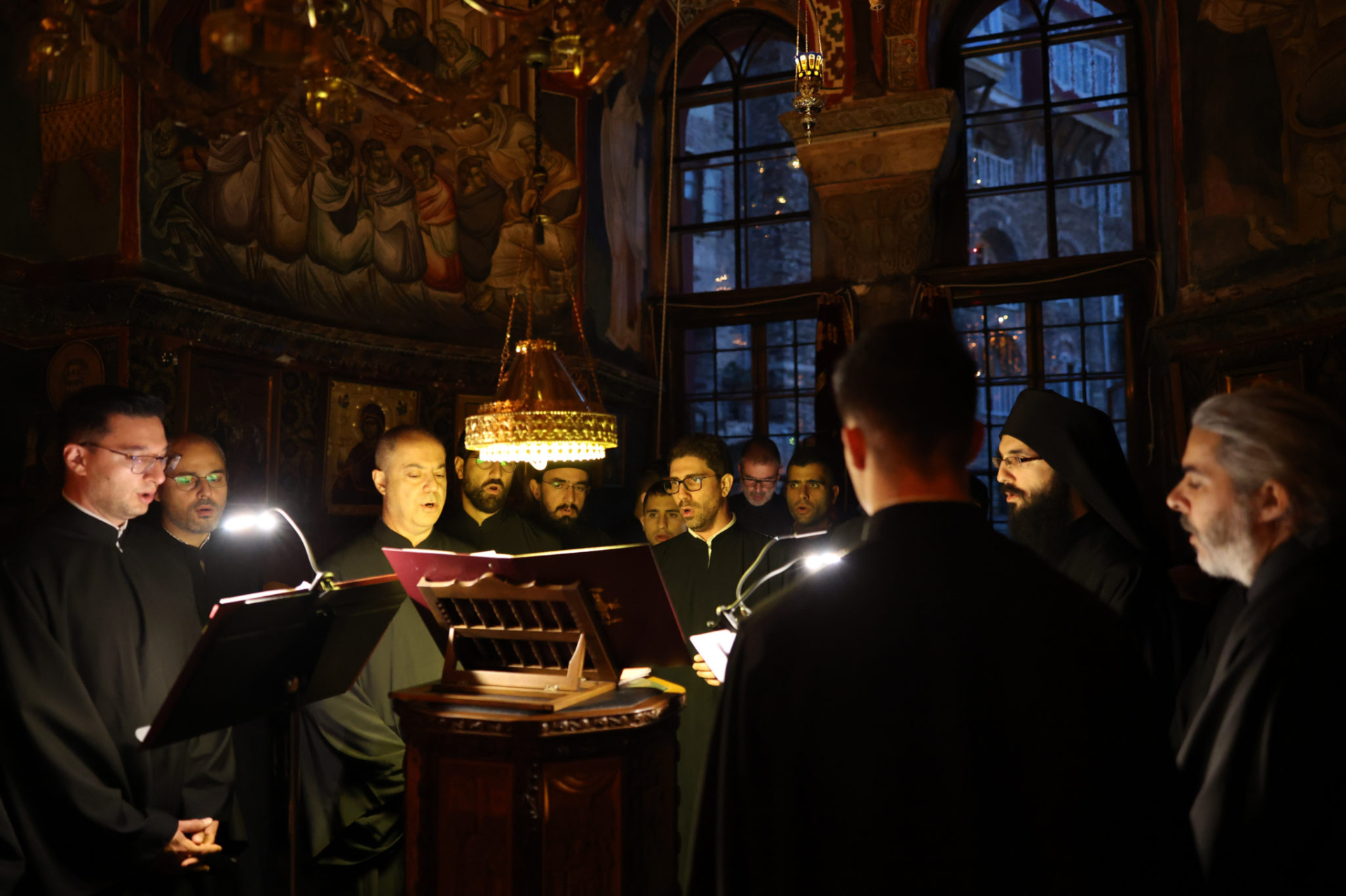 Μαζί με καλλικέλαδους αγιορείτες πατέρες ψάλλαμε τα ωραιότατα μέλη και τις Θεομητορικές ωδές της πολύωρης αγρυπνίας της εορτής του Ευαγγελισμού της Υπεραγίας Θεοτόκου.